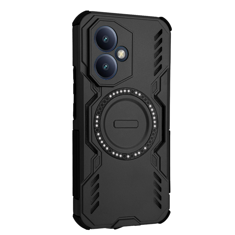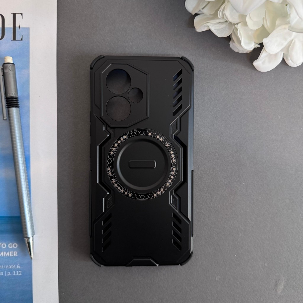 در قسمت پشتی قاب، یک حلقه مغناطیسی فلزی قرار دارد که علاوه بر ظاهر خاص، امکان اتصال به پایههای مگنتی خودرو را فراهم میکند. این حلقه قابلیت چرخش دارد و میتوان از آن بهعنوان استند برای تماشای ویدیو یا تماس تصویری استفاده کرد.