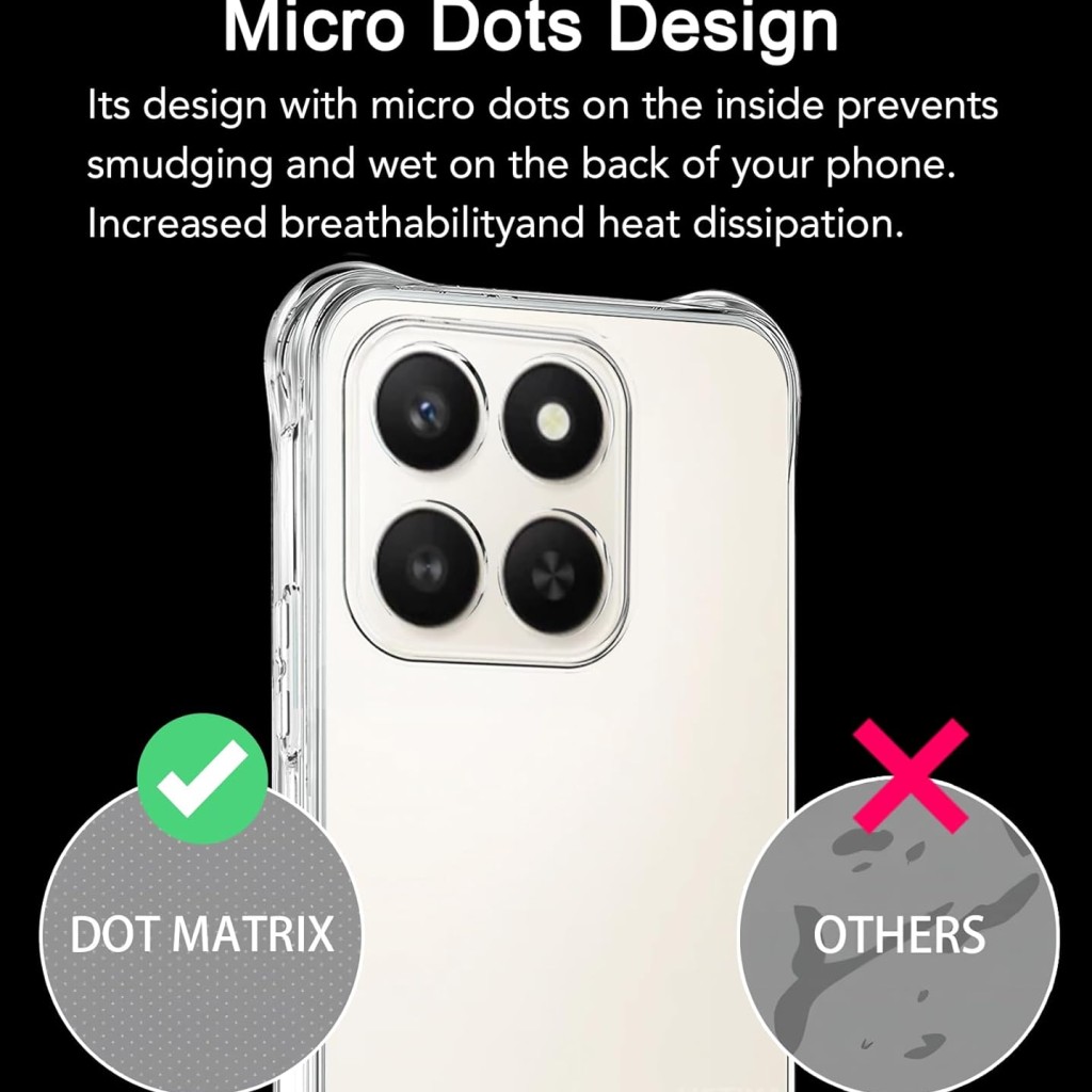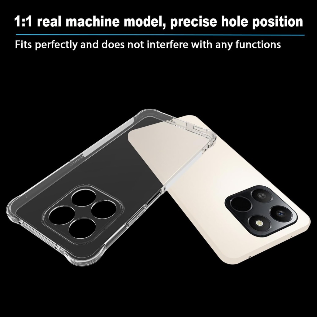چهار گوشه تقویتشده قاب با طراحی کپسولی، نقش مهمی در کاهش فشار ضربه دارند. لبههای برجسته اطراف نمایشگر و دوربین نیز باعث محافظت بهتر از این بخشهای حساس میشوند. شفافیت بالای قاب کمک میکند طراحی اصلی گوشی Honor X7D کاملاً دیده شود و ظاهر آن تغییری نکند.